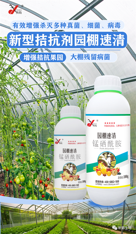 大棚清园:针对土壤残存病菌镰刀菌、丝核菌、霉菌、假单胞菌细菌、灰葡萄孢菌、疫霉属菌、病毒杀菌全 面、灭菌彻底、击倒能力强、封闭性能好。