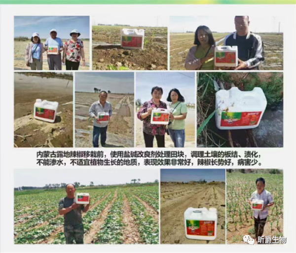 3、使用昕爵肥万钾盐碱改良剂、分解卤水消除盐碱。补充微量元素增加肥力。杀灭病菌祛枯黄。***生根高抗重茬。修复地质,增加团粒结构,松土改板结。