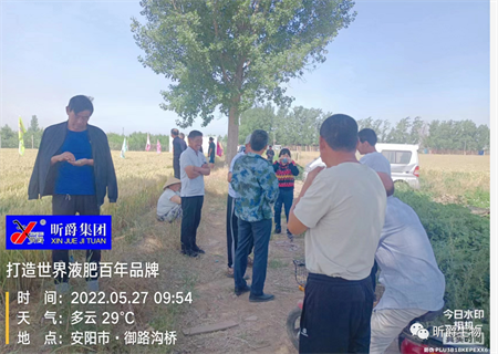 2022年5月27日,昕爵第四服务团队,在安阳市邺城大道,小麦田里对小麦长势、亩穗数、穗粒数等开展测产作业,当地喷施过肥力精的也是踊跃分享喷施肥力精后效果。