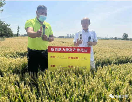 昕爵产品再当地已经12年,肥力精从上市到现在在当地市场销售3年之久,农户经销商对肥力精也是一致认可,他在小麦的抗倒伏,抗旱,抗干热风 上面效果突出,喷施过肥力精的,不凸尖,穗粒数增加,并且每穗穗头大,长穗头数多,活秆成熟,营养更充足,使小麦籽粒饱满,千粒重增加1-2g。