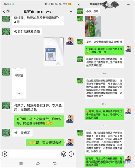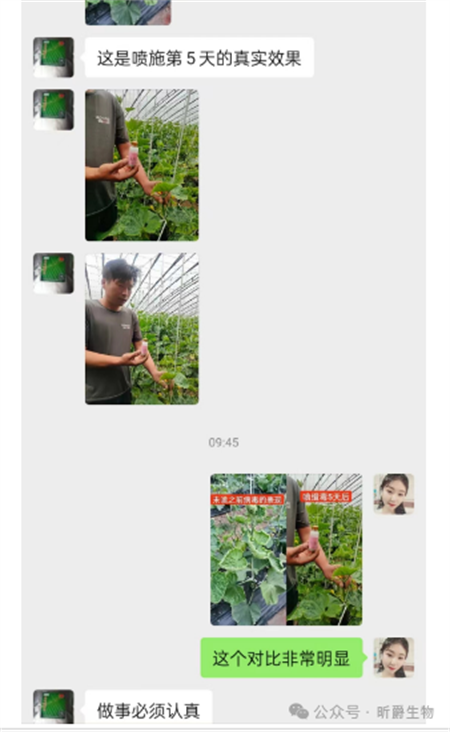 前不久在河北廊坊的一个黄瓜大棚里,当时当地黄瓜病毒病发生的非常研制,之前选择过5家农药肥料厂家的产品,结果都没很好的治住,之后联系到了昕爵集团的工作人员,说明了当时情况后,昕爵的工作人员建议客户先拿4瓶新缉·毒样品试一下。下面就是一周内的情况变化,我们一起来看一下:左边是2024年4月19号没用新缉·毒之前的,右边是使用过5天后的情况,短短5天时间,直接切断了感染源让黄瓜重燃生机,为了更好的稳固效果,客户又喷施第2遍。