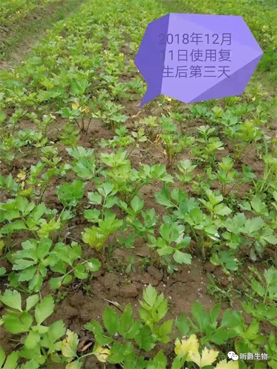 广西岑溪代理商钟总反馈的信息,当地芹菜黄萎病非常严重,使用其他药物根本解决不了病情,但是使用昕爵微生物菌剂复生后仅仅3天就可以看出非常明显的效果,芹菜开始恢复生长,第7天观察后就看不到任何病害,而且促进芹菜长势,使芹菜长势非常旺盛!
