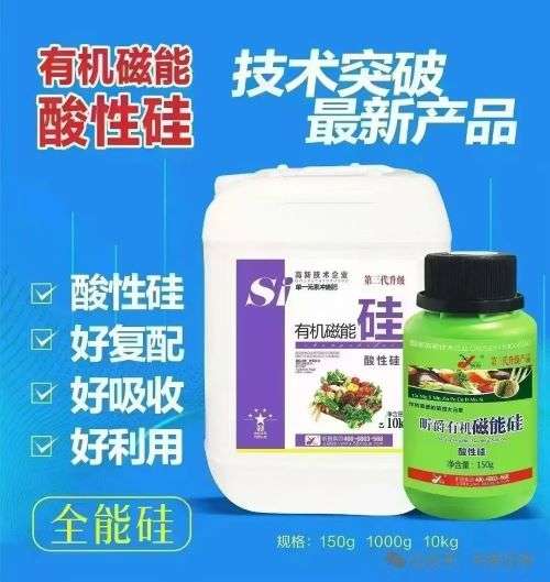 有机磁能酸性硅肥应用在玉米、花生、大豆、番茄、黄瓜、葡萄和草莓等作物有明显的增产效果。昕爵酸性硅和市面上碱性硅肥的区别是什么呢?昕爵酸性硅是小分子磁能硅,它不会和土壤里面的氧气发生反应生成二氧化硅,那二氧化硅就是石头。所以说一般的这个硅肥利用率都达不到25%。昕爵的小分子磁能硅,不会生产二氧化硅,它的吸收率能达到87.5%。昕爵酸性全能硅,可以和其他产品复配的硅肥!超 强吸收,利用率是碱性硅的十几倍!酸性硅,复配强,吸收好,抗黄叶,抗倒伏,长势壮,抗病抗虫能力强。